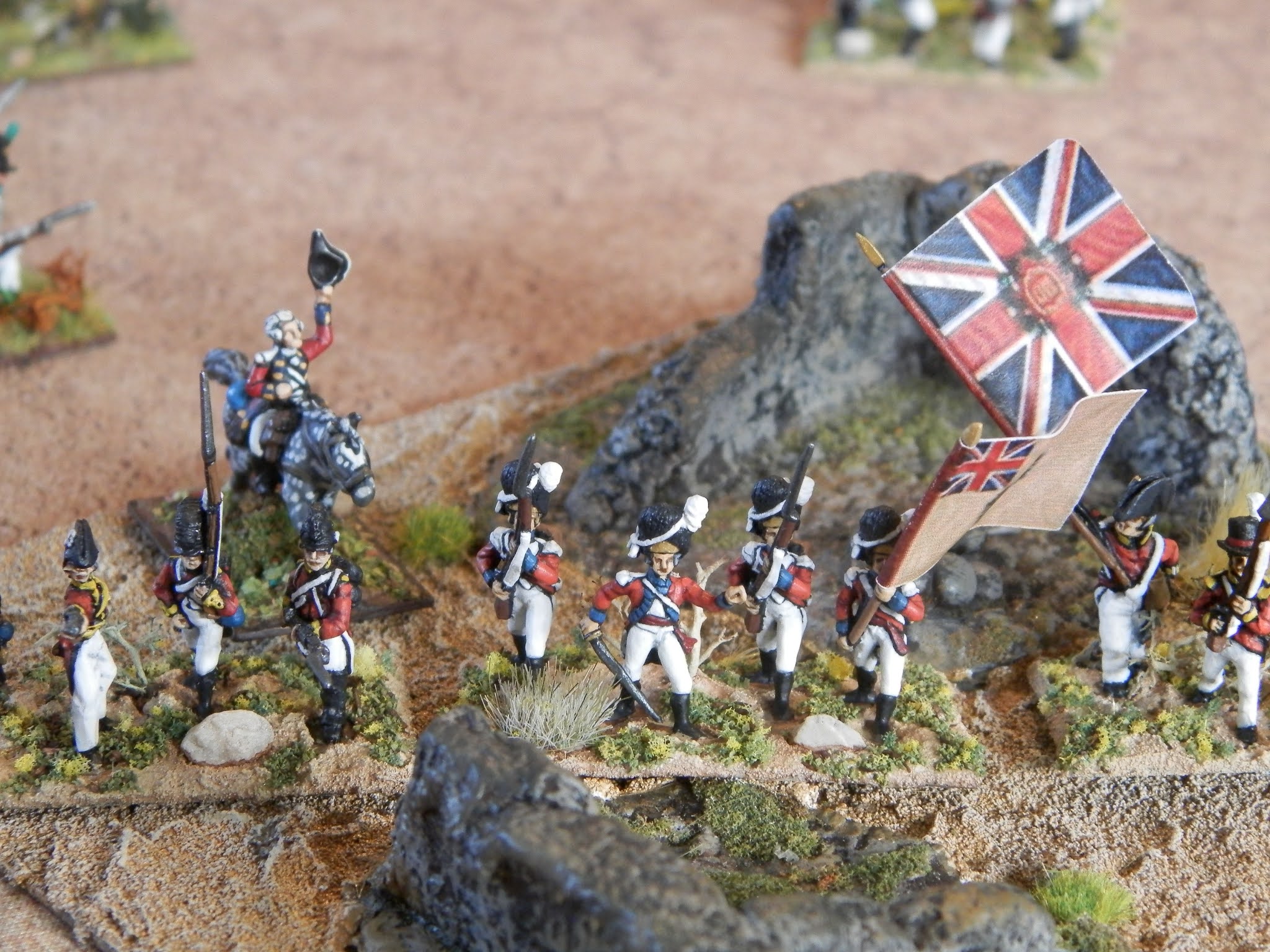 | Fraichement débarqués, drapeaux au vent, le maigre mais redoutable contingent Britannique... Freshly landed, flags flying, the meager but formidable British contingent ... |